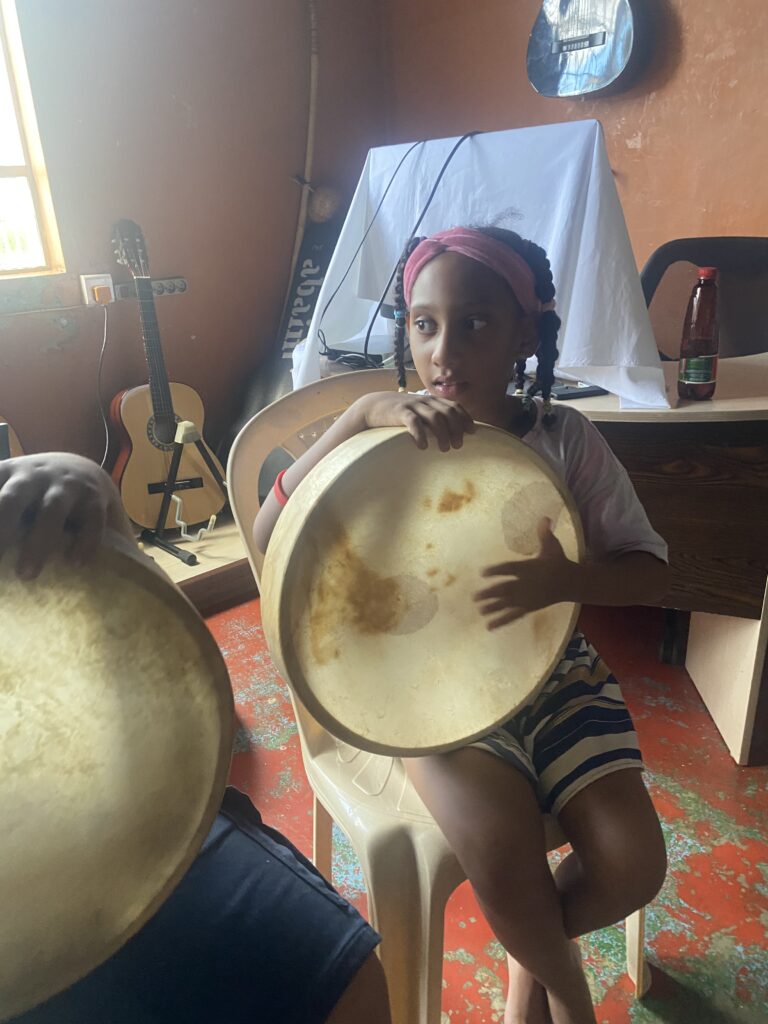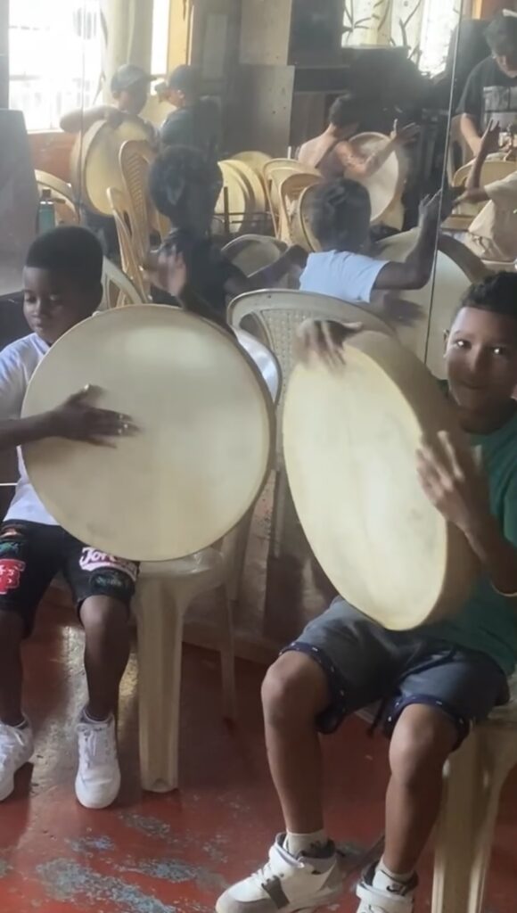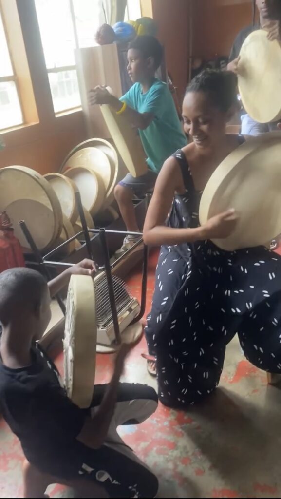 While I was there, I joined lessons and workshops, spent time learning from Alain as well as director Marousia Bouvery, members and children, and got to see and play historic traditional instruments, including some made by hand in the traditional methods by the children and members of Abaim as part of the group’s mission to keep alive the historic ways of fabricating instruments developed by ancestors. I returned to the UK with some of these to keep practising on, and which now form part of how I work with sound, music, history, and memory. It was also an honour to be invited to speak to the children about the research I do, the connections between Seychelles, Mauritius and the other islands and even share some of the traditional songs that I know.