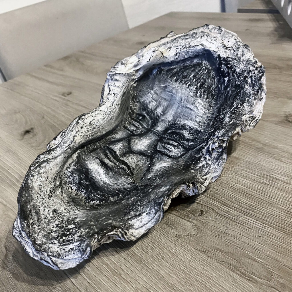 Antoine Manes was known to many as the ‘Shellman of Seychelles’ – until his death in 2024 he dived for, and collected, rare and beautiful sea shells. He was known for having the best collection on the islands, for having discovered now types of shell and for selling shells from his shop in Victoria. He was visited by shell enthusiasts from all over the world. His passion always moved me and I’d always look forward to going down to his shop to see his new finds and have conversations, about his life, the sea, and what shells meant to him. Finding out of his passing moved me to draw him, on a shell of course, and adopt him as an ancestor I’ll continue to honour. To the friends and loved ones I’ve given cowries to before about 2024 – especially if they were shiny, they likely came from Antoine.