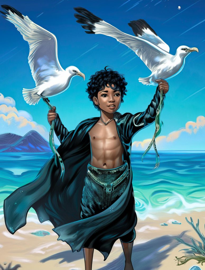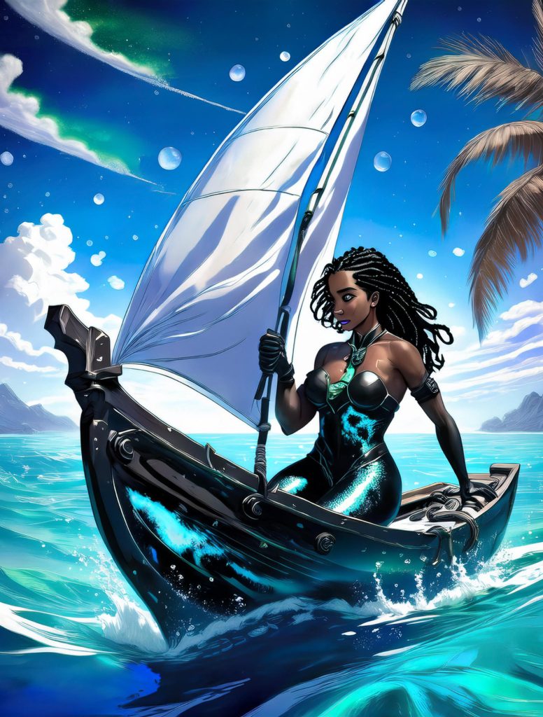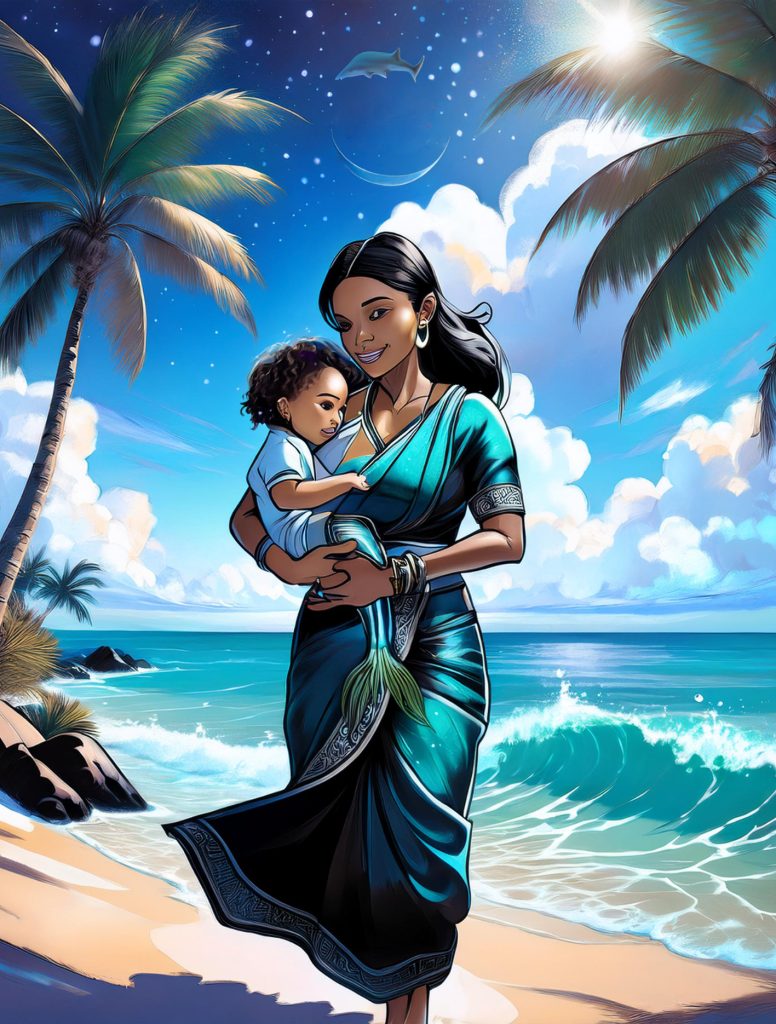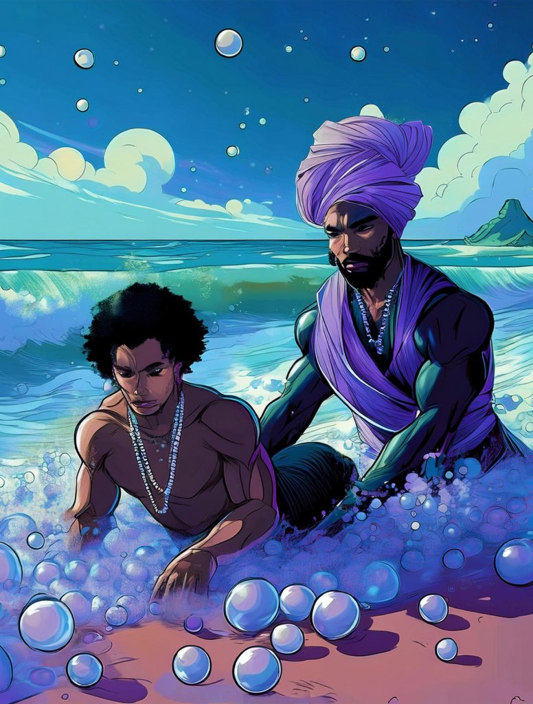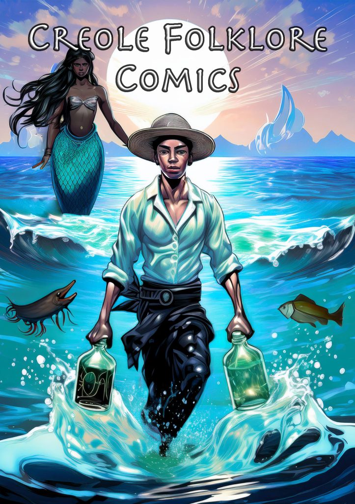 This project came about as an experiment of curiosity – typing Indian Ocean folklore, stories and mythology into AI that generates super-hero style comic book imagery. Eventually I would like to create similar images myself or work with an artist to create something closer to what I imagine as a comic, but `I wanted to share these images as starting points. I had the idea after my research was used by Seychellois Creole researcher Dr Penda Choppy in giving context to her 2023 database of Creole folklore which documented oral stories in Seychelles, many for the first time ever, and after a friend who creates graphic art showed me how AI is becoming used in it.
